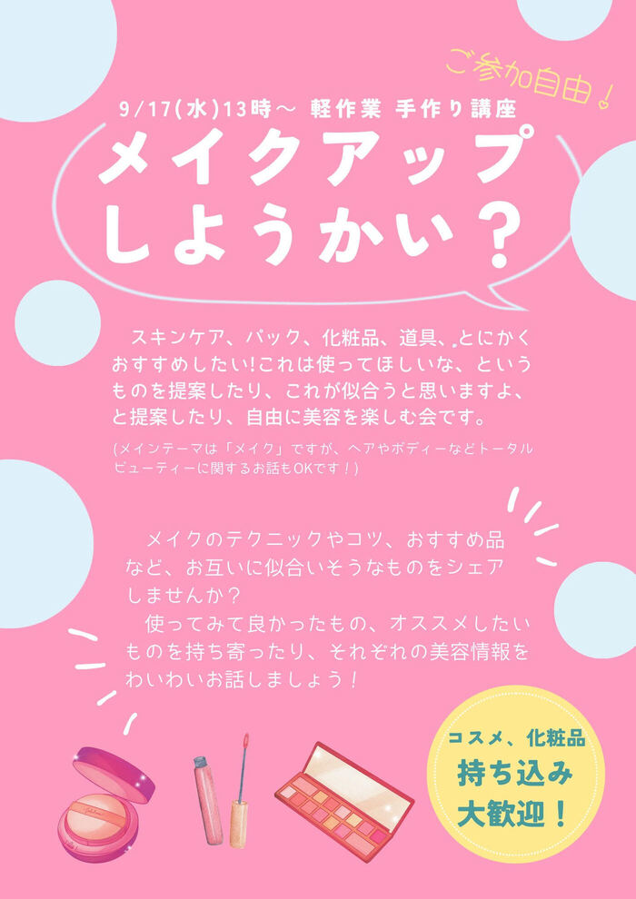 さて、どんなメイクアップの会になるのか楽しみですね♪
