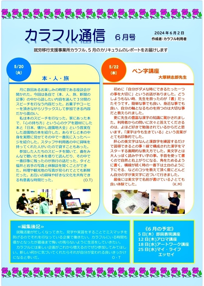 6月、カラフルでは様々なカリキュラムが用意されています。